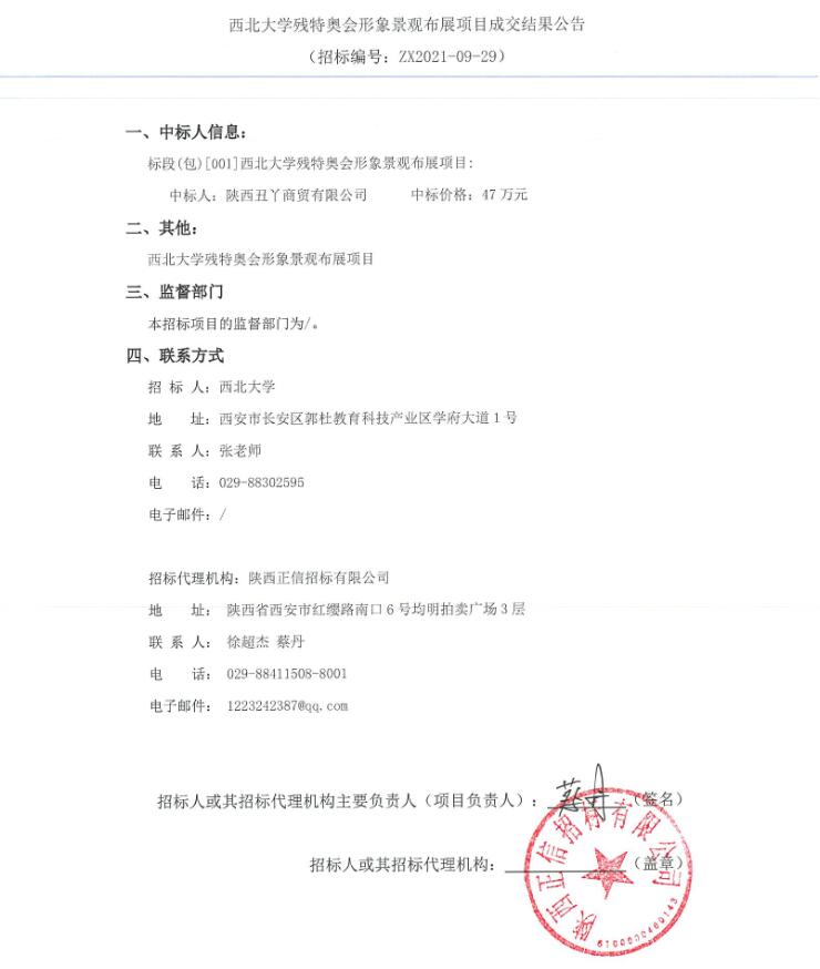 关于古天乐代言太阳集团城网址残特奥会形象景观布展项目成交结果公告