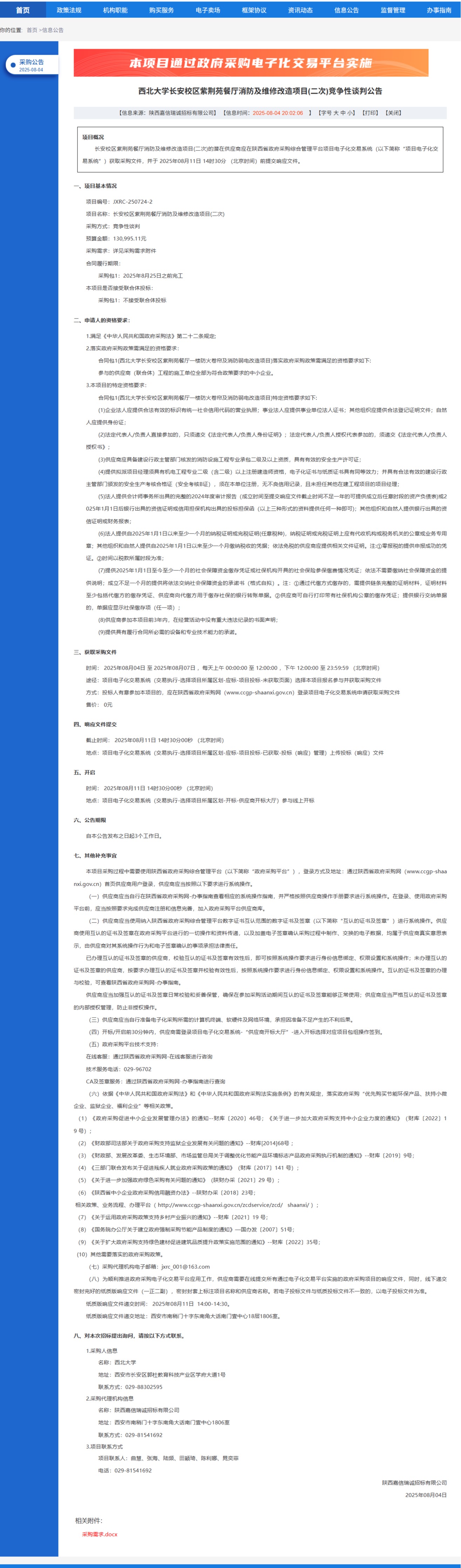古天乐代言太阳集团城网址长安校区紫荆苑餐厅消防及维修改造项目(二次)竞争性谈判公告 作者: 编辑:党丹珩 时间:2025-08-04 公告地址:https://www.ccgp-shaanxi.gov.cn/freecms/site/shaanxi/ggxx/info/2025/8a69c1e29860ef6f019874c6b4a22713.html?noticeType=001013¬iceId=e37c65dc-712c-11f0-8063-08c0eb20c666