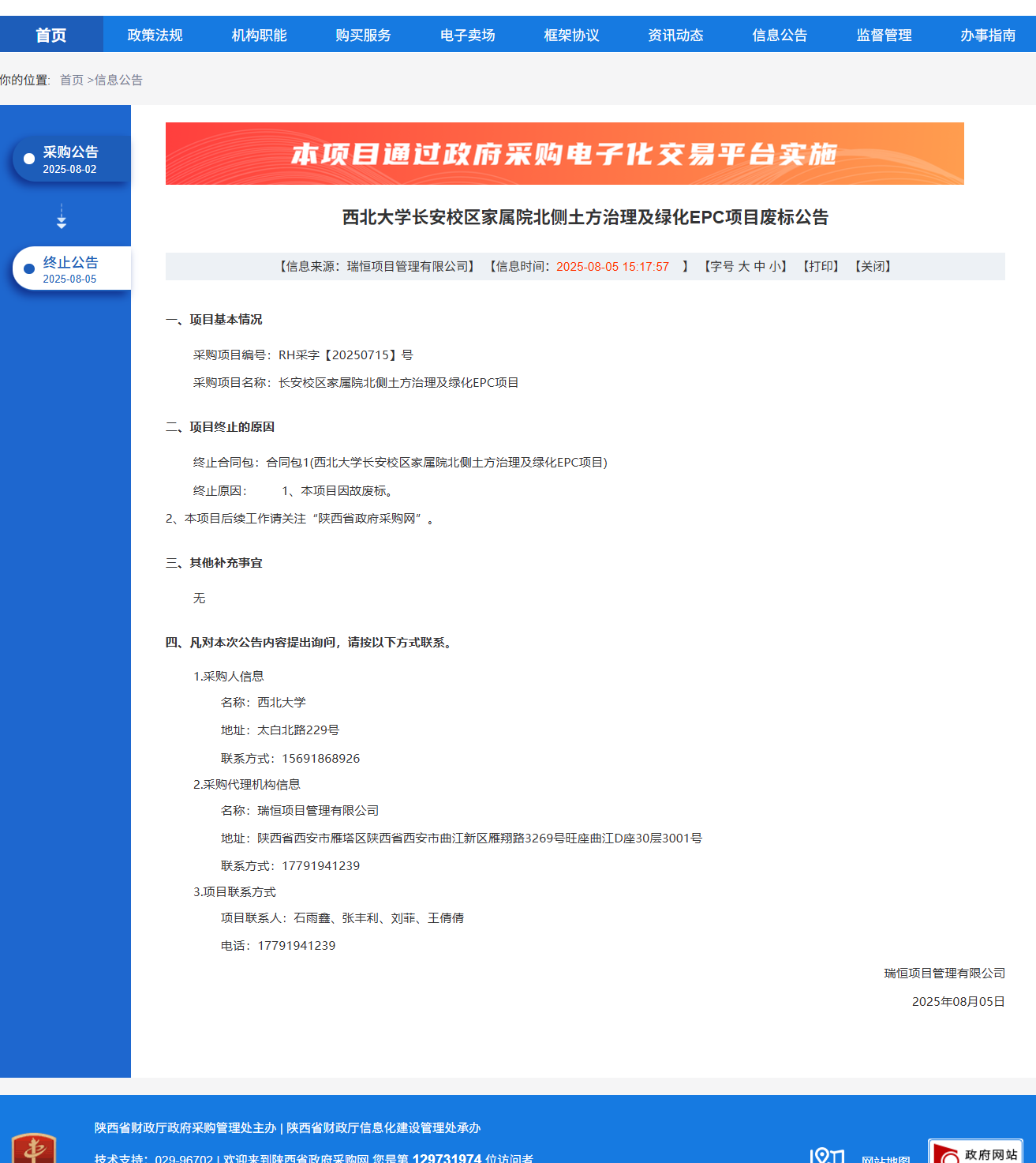 古天乐代言太阳集团城网址长安校区家属院北侧土方治理及绿化EPC项目废标公告 作者: 编辑:党丹珩 时间:2025-08-05 公告地址:http://www.ccgp-shaanxi.gov.cn/freecms/site/shaanxi/ggxx/info/2025/8a69c8f99860f21c0198790d379441f5.html?noticeType=001004¬iceId=5c6803f0-71ce-11f0-8063-08c0eb20c666