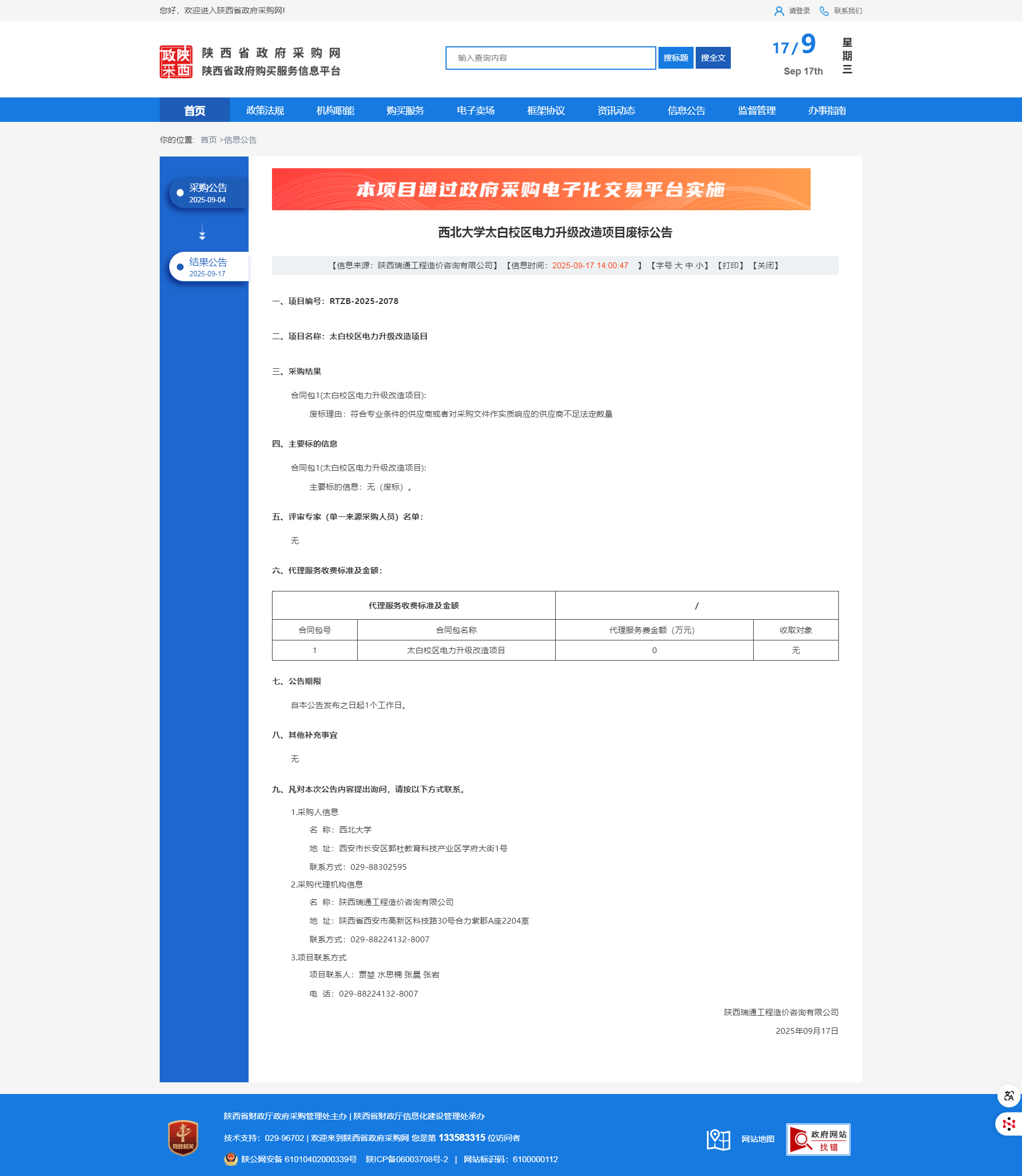 古天乐代言太阳集团城网址太白校区电力升级改造项目废标公告