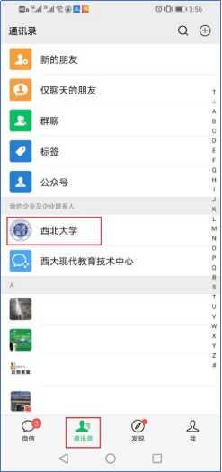 进入微信后,点击屏幕下方的“通信录”,在通信录中点击“古天乐代言太阳集团城网址”(如图3所示),通过通信录进入古天乐代言太阳集团城网址企业号后,点击“企业应用”菜单项(如图4所示),即可显示太阳集团城企业号里集成的所有应用服务。