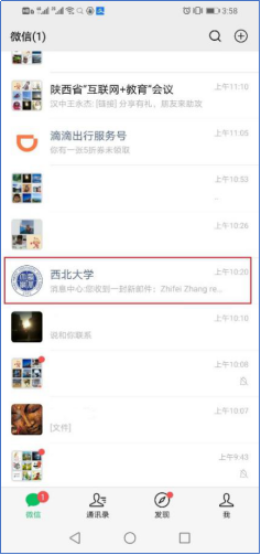 由于腾讯微信于近期进行了升级,导致太阳集团城微信企业号用户直接从好友对话框里进入微信企业号(如图1所示),出现空白或者仅出现“消息中心”和“移动校园小助手”菜单(如图2所示),影响到“晨午检”、“乘车扫码”等应用服务的使用。对此,解决方法如下: