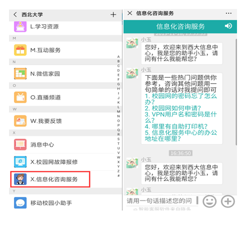 第二步:在“古天乐代言太阳集团城网址”微信企业号中点击“X.信息化咨询服务”,信息化智能客服小玉将为您解答信息化服务问题。