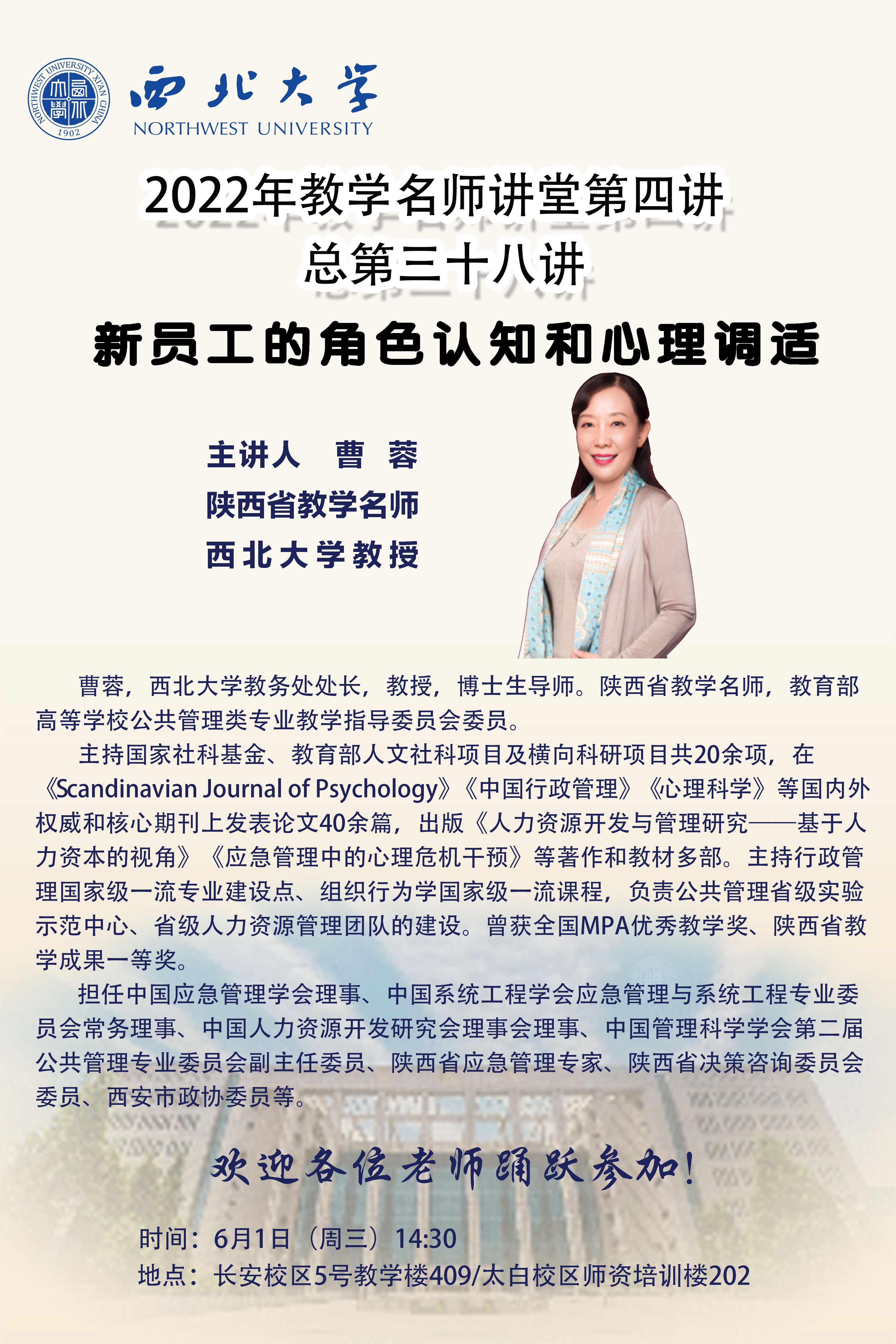 古天乐代言太阳集团城网址2022年教学名师讲堂第四讲——新员工的角色认知和心理调适