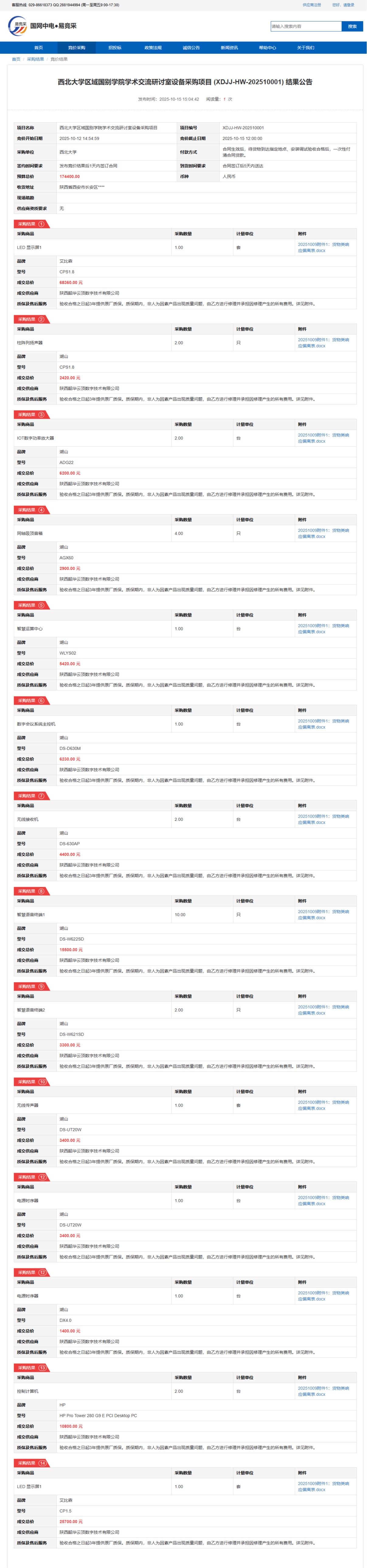 古天乐代言太阳集团城网址区域国别学院学术交流研讨室设备采购项目(XDJJ-HW-202510001)竞价结果公告