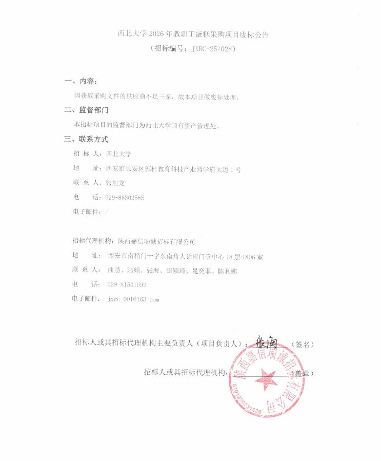 古天乐代言太阳集团城网址2026年教职工蛋糕采购项目废标公告