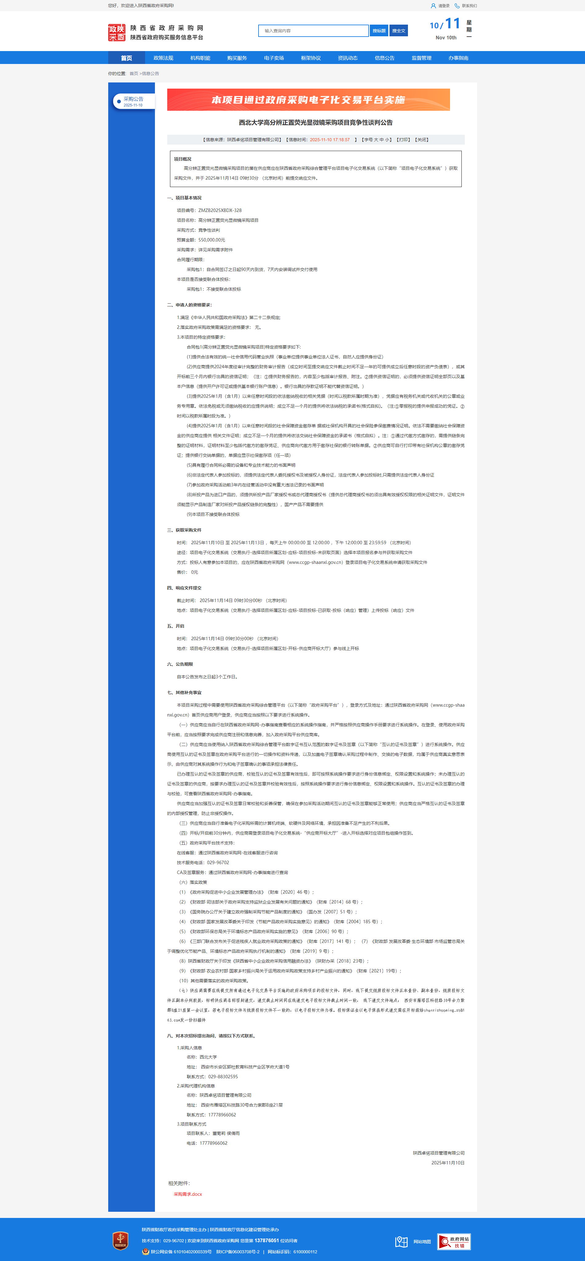 古天乐代言太阳集团城网址高分辨正置荧光显微镜采购项目竞争性谈判公告
