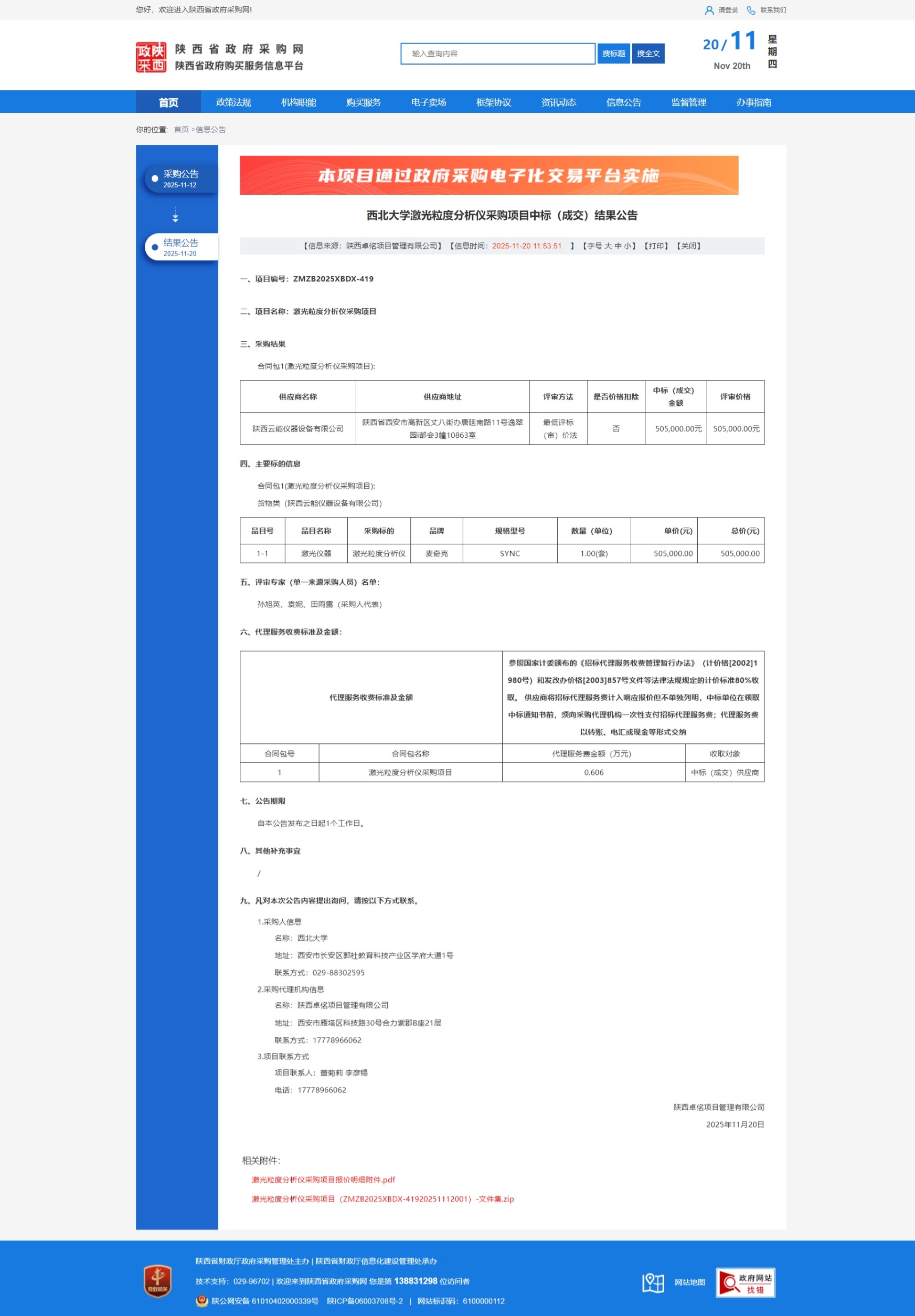 古天乐代言太阳集团城网址激光粒度分析仪采购项目中标(成交)结果公告 作者:国有资产管理处 编辑:国有资产管理处 时间:2025-11-20 原公告链接:https://www.ccgp-shaanxi.gov.cn/freecms/site/shaanxi/ggxx/info/2025/8a69c5539a636e42019a9f5c85c63e62.html?noticeType=001023¬iceId=c1e65fb5-c5c6-11f0-8063-08c0eb20c666