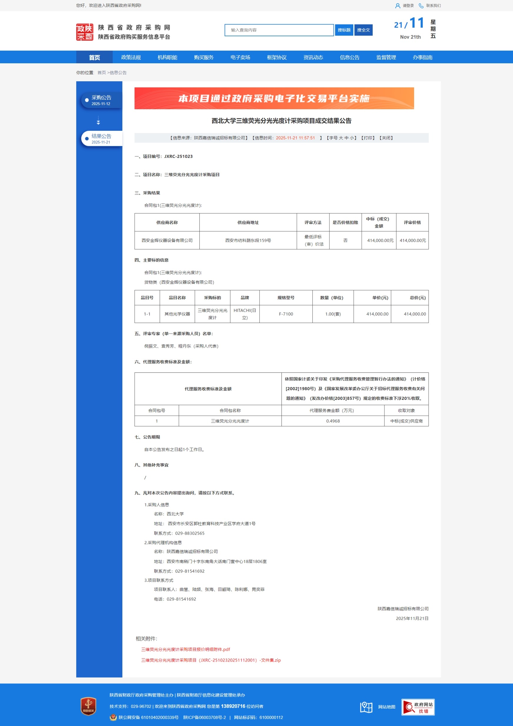 古天乐代言太阳集团城网址三维荧光分光光度计采购项目成交结果公告 作者:国有资产管理处 编辑:国有资产管理处 时间:2025-11-21 原公告链接:https://www.ccgp-shaanxi.gov.cn/freecms/site/shaanxi/ggxx/info/2025/8a69c0019a9a55ca019aa4229c8b6f4d.html?noticeType=001023¬iceId=7c2bb784-c690-11f0-8063-08c0eb20c666