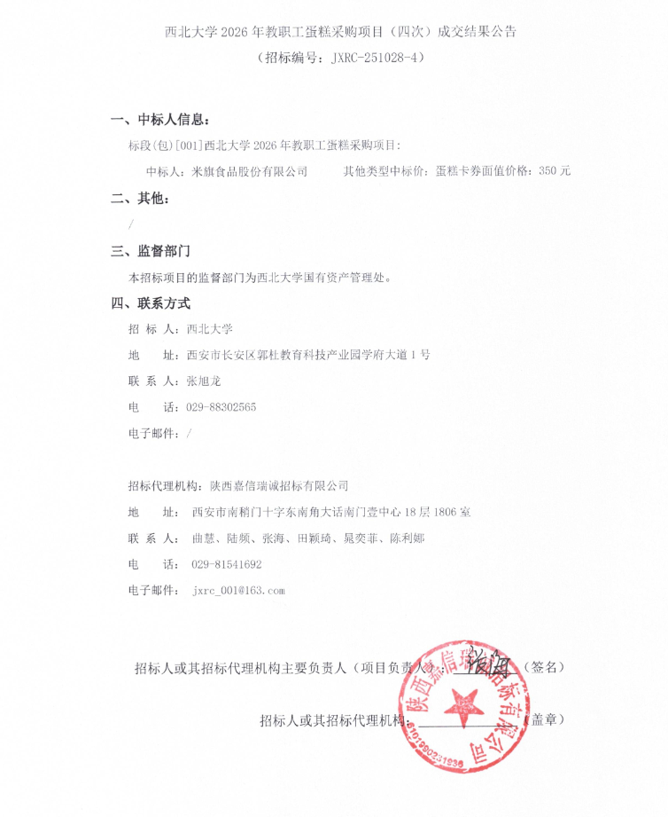 古天乐代言太阳集团城网址2026年教职工蛋糕采购项目(四次)成交结果公告