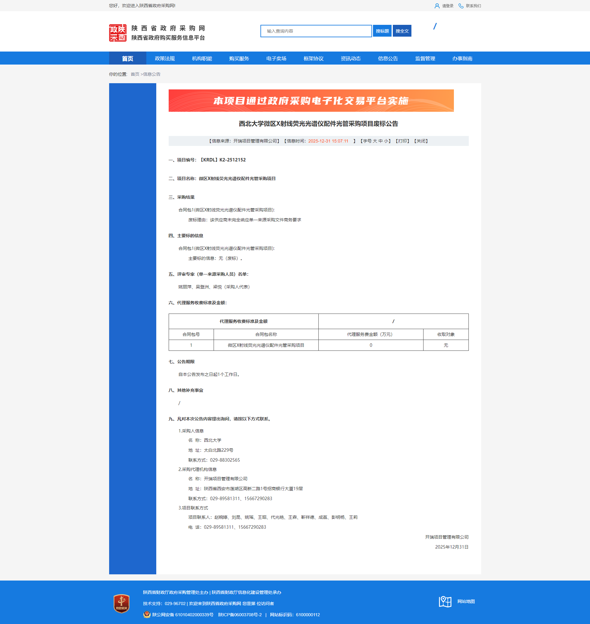 古天乐代言太阳集团城网址微区X射线荧光光谱仪配件光管采购项目废标公告